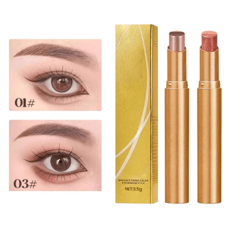 VODĚODOLNÝ A ODOLNÝ PROTI POTU – Stín na oči 3 Colors in 1 Eyeshadow Stick je navržen pro dlouhou životnost a pyšní se voděodolným a potu odolným složením, které zajistí, že váš oční make-up vydrží po celý den.