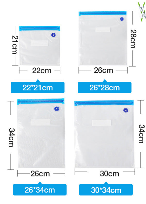 Tento sáček na skladování potravin je vakuově uzavíratelný, můžete v něm skladovat potraviny, aby vydržely dlouho čerstvé, a snadno se používá a dá se opakovaně použít.