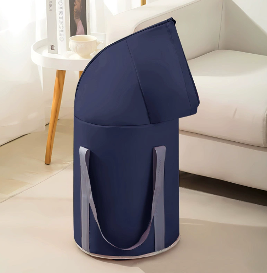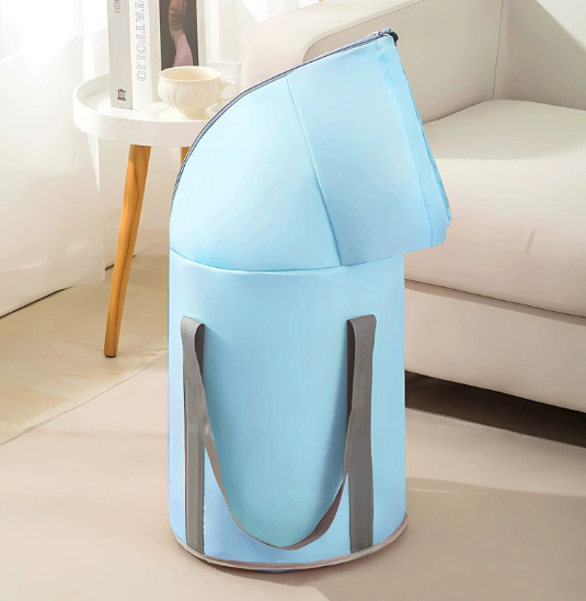 Rozměry: 32 cm (průměr) × 43 cm (výška) – prostorný, ale skládací. Rychlé rozložení pro použití, snadné složení pro skladování – šetří místo doma. Dodává se s úložným vakem: Ideální na cestování, kempování nebo výlety za zábavou.